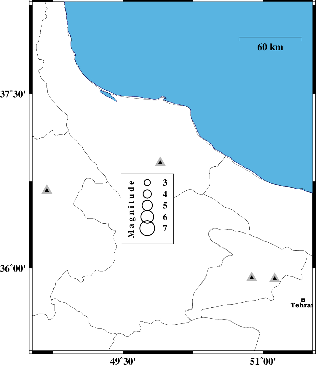 2010/02/06 | 18:17:33.8 | 21:47:33.8 | 36.78 | 50.03 | 14 | ML:2.6 | 36 km South-West of Amlash, Gilan Province |