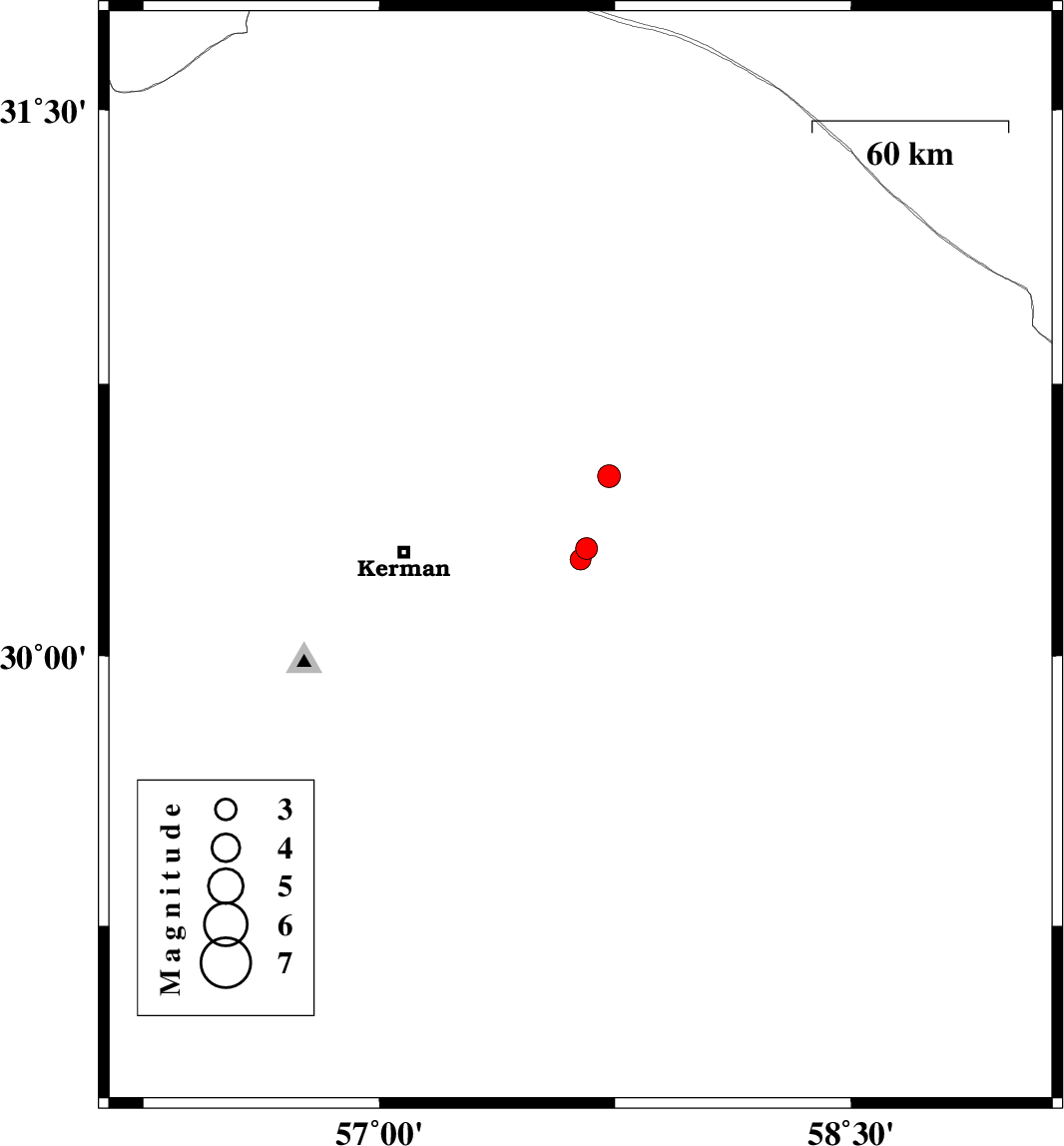 2010/02/07 | 07:55:01.0 | 11:25:01.0 | 30.04 | 57.55 | 6 | ML:3 | 52 km South-East of Kerman, Kerman Province |