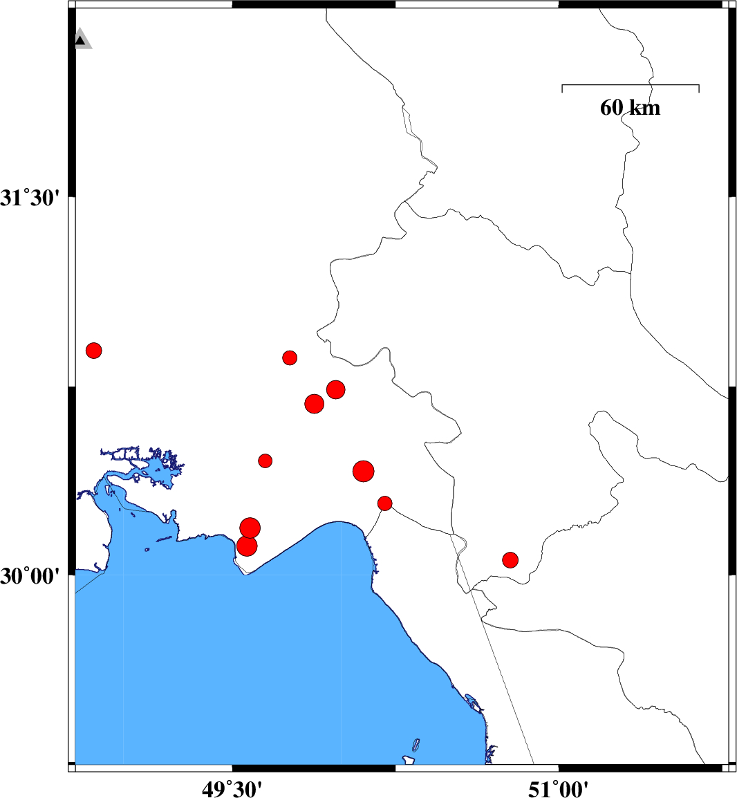 28 km South-East of Omidiyeh, Khoozestan Province | |