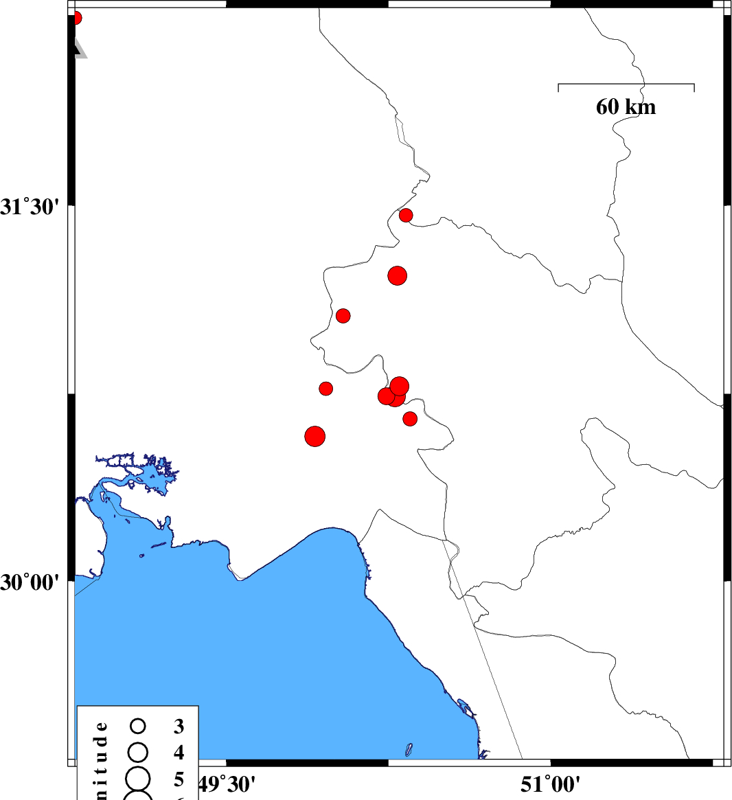 2010/02/13 10:11:23.7 13:41:23.7 30.7749.9614 ML:2.8 23 km East of Omidiyeh, Khoozestan Province