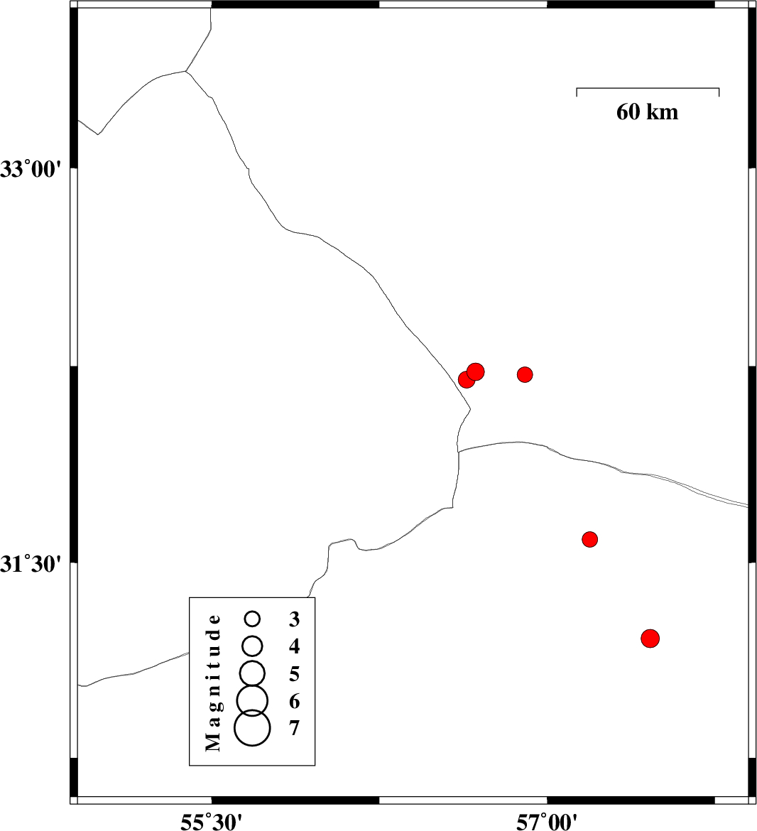 2010/03/01 21:17:30.7 00:47:30.7 31.0956.9615 ML:3.6 Kerman Province, 24 km South-East of Ravar