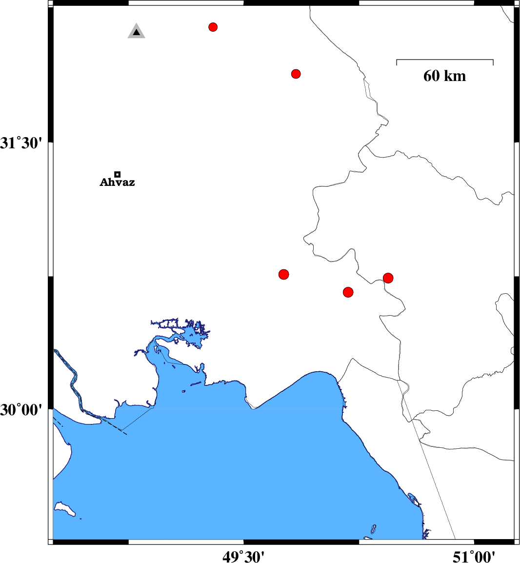 2010/03/11 | 18:31:07.7 | 22:01:07.7 | 30.76 | 49.76 | 45 | ML:3 | Khoozestan Province, 5 km Omidiyeh | ||