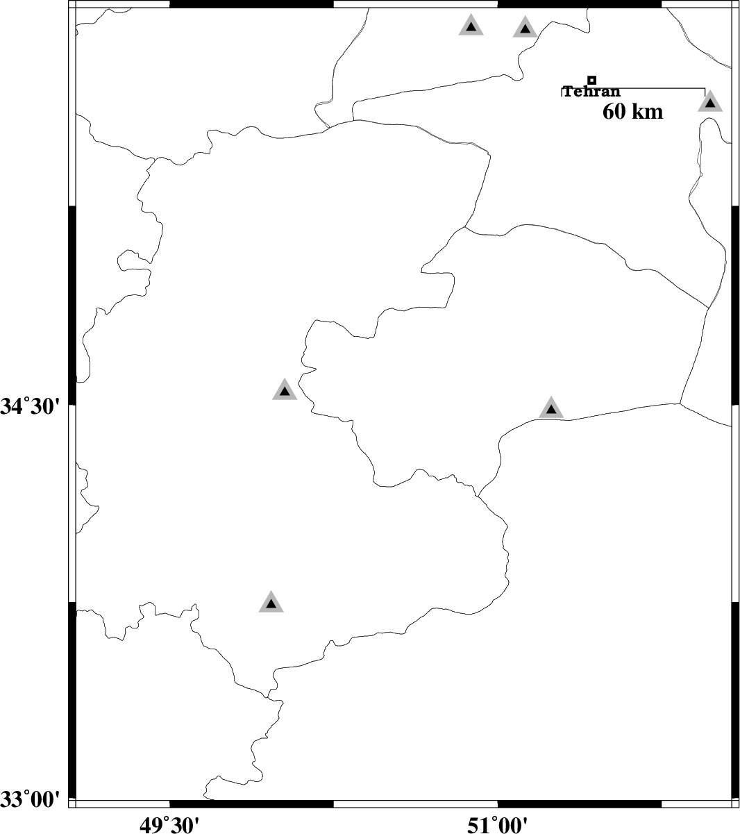 2010/03/21 | 01:07:58.9 | 04:37:58.9 | 34.49 | 50.57 | 46 | ML:2.8 | Qom Province, 33 km South-West of Qom |