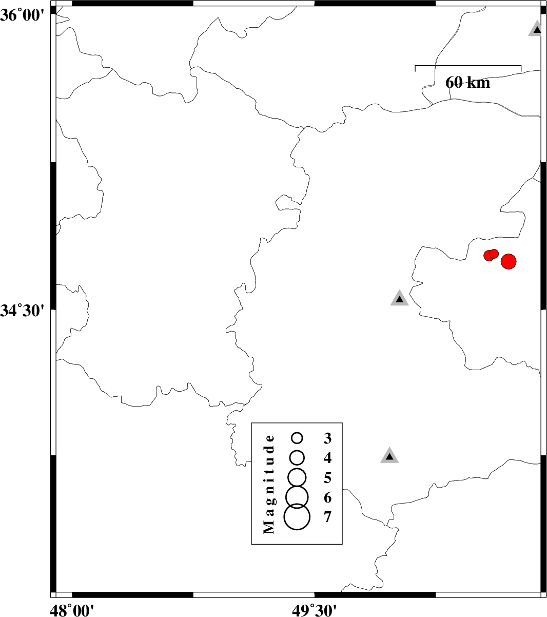 2009/07/15 | 21:32:04.7 | 02:02:04.7 | 33.5 | 48.04 | 14 | ML:2.7 | Lorestan Province, 30 km West of Khorramabad |