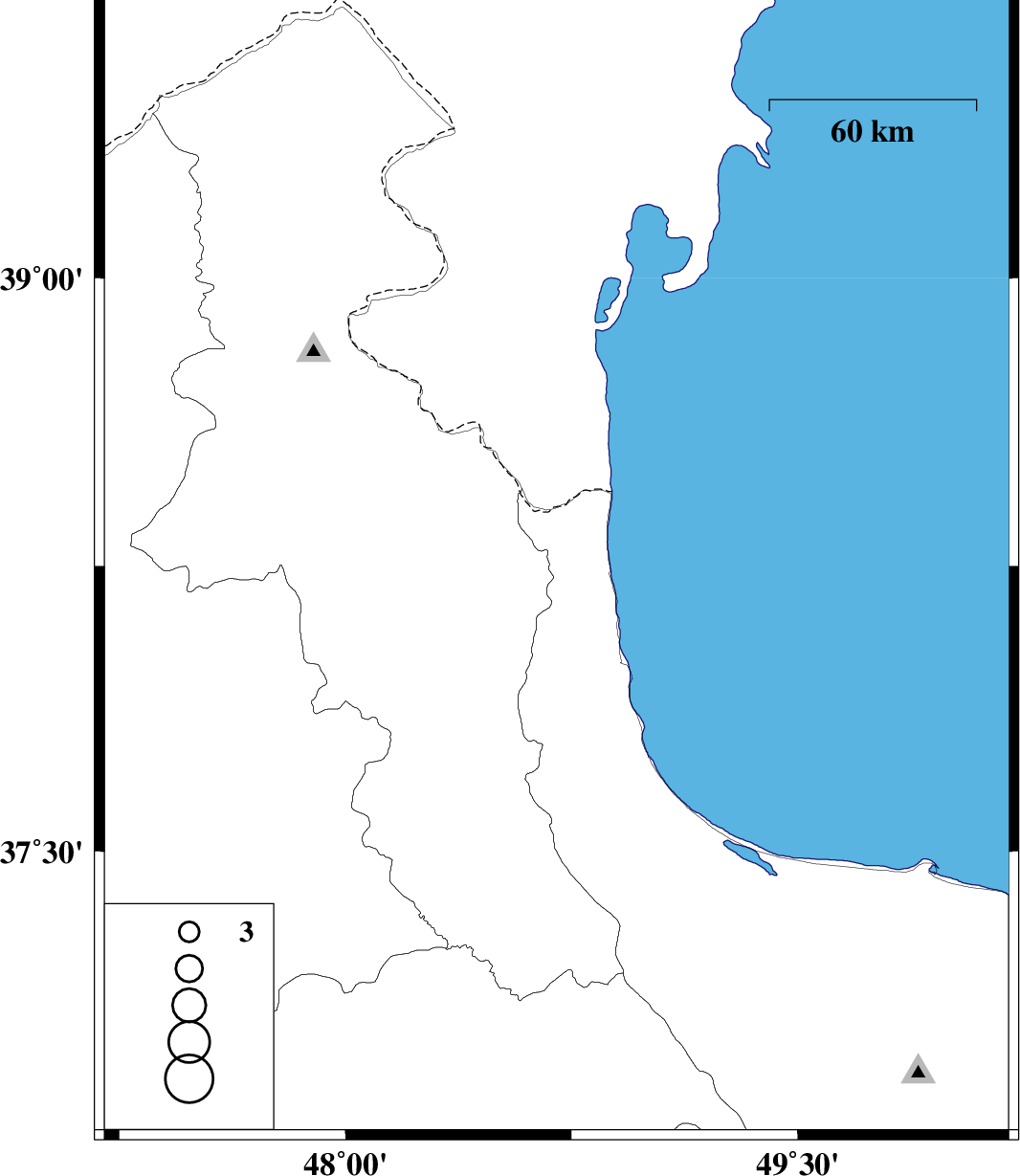 | 2009/07/23 | 05:45:46.6 | 10:15:46.6 | 38.26 | 48.7 | 14 | ML:2.8 | Gilan Province, 23 km South-West of Astara |