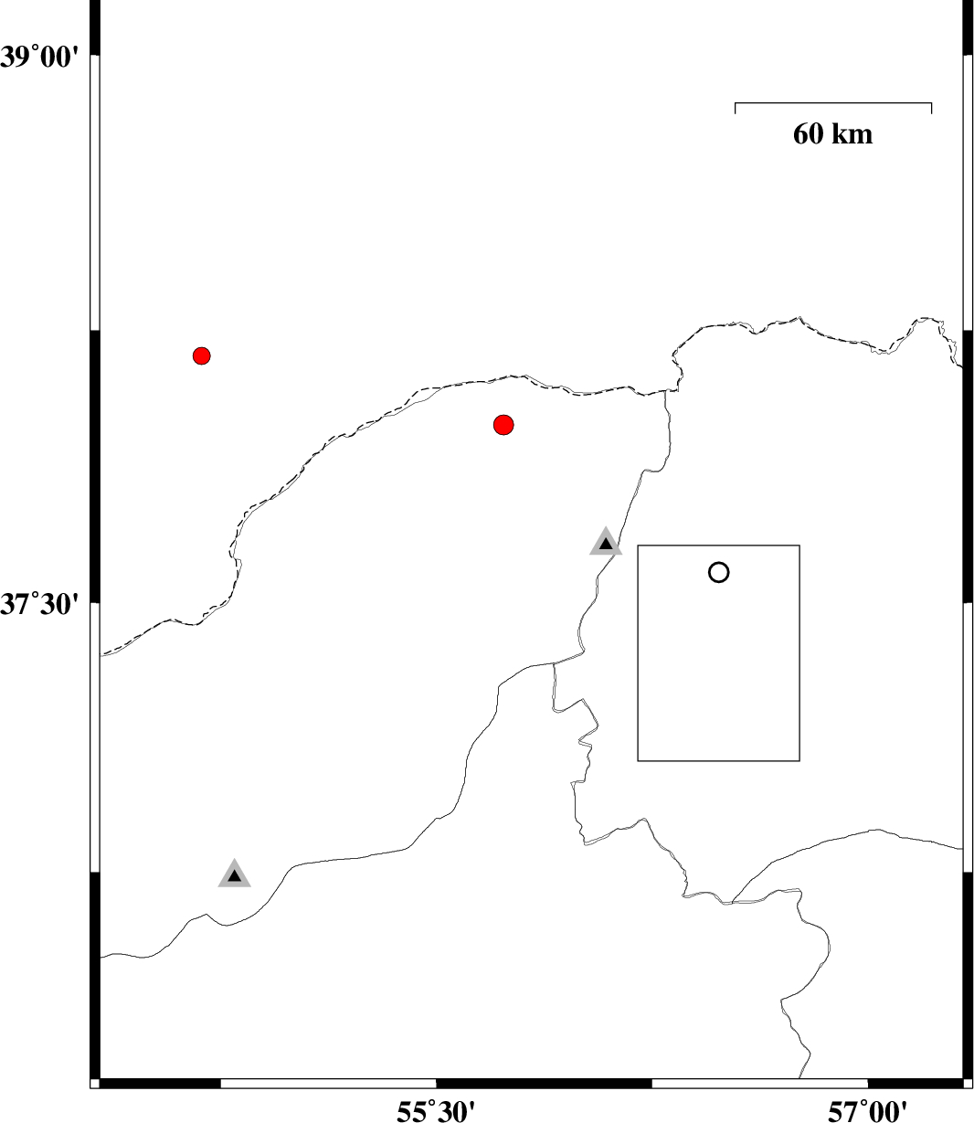 | 2009/06/18 | 14:23:51.5 | 18:53:51.5 | 36.99 | 55.29 | 15 | ML:3 | 12 km East of Ramian, Golestan Province |