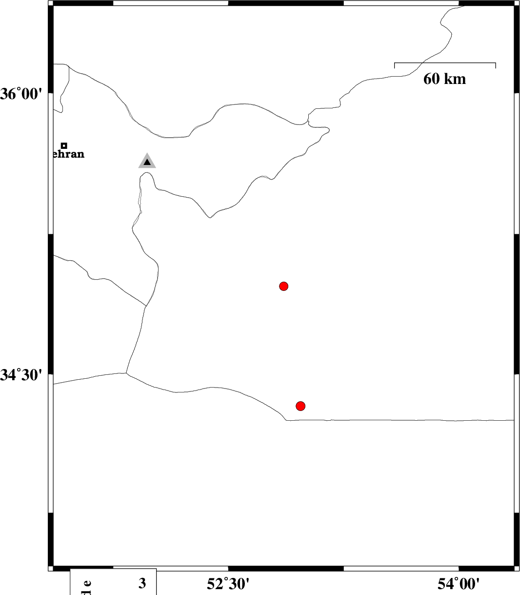 | 2009/08/05 | 08:02:26.6 | 12:32:26.6 | 34.96 | 52.86 | 27 | ML:2.7 | Semnan Province, 55 km South-East of Garmsar | ||