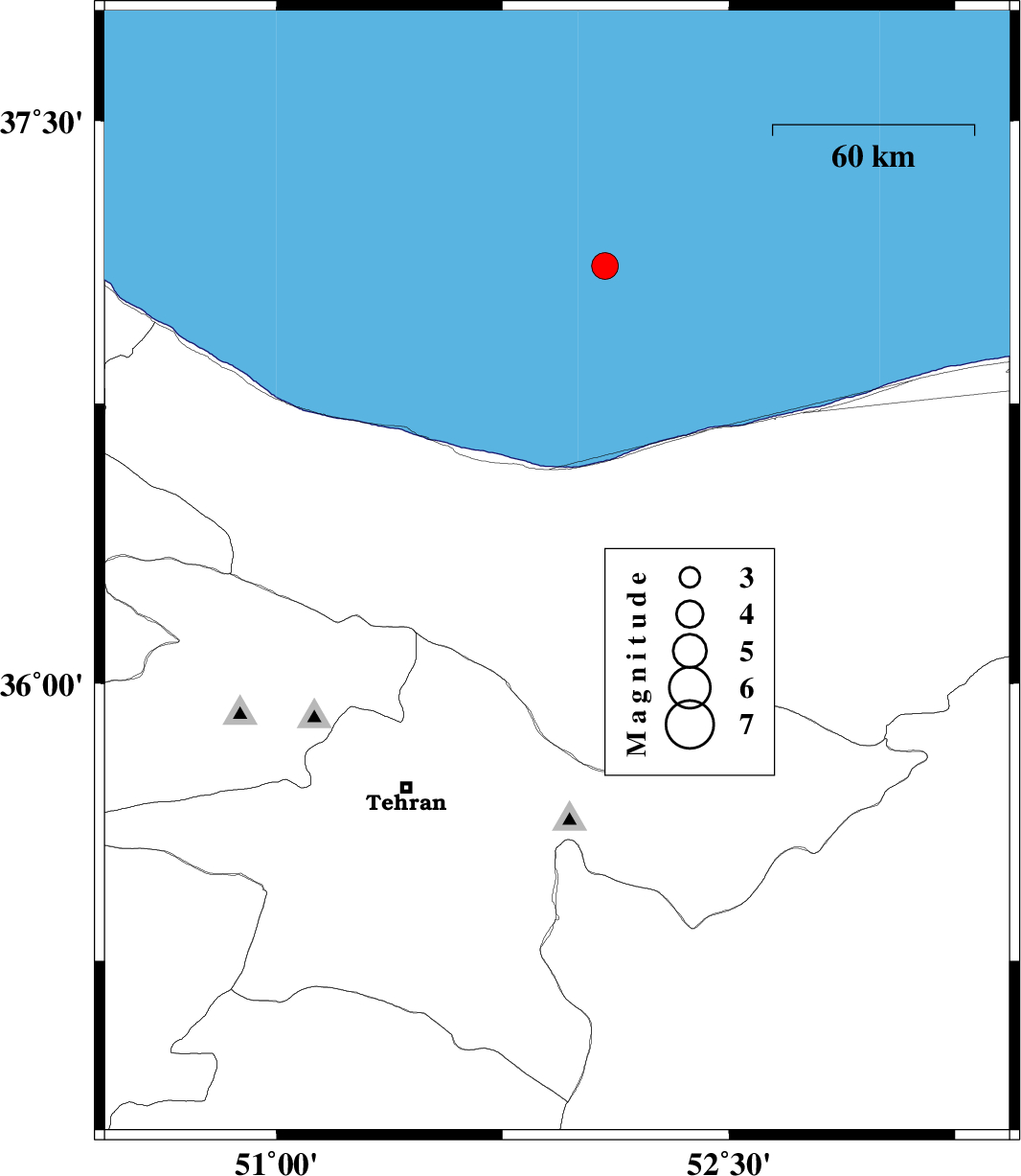 | 2009/08/05 | 08:02:26.6 | 12:32:26.6 | 34.96 | 52.86 | 27 | ML:2.7 | Semnan Province, 55 km South-East of Garmsar | ||