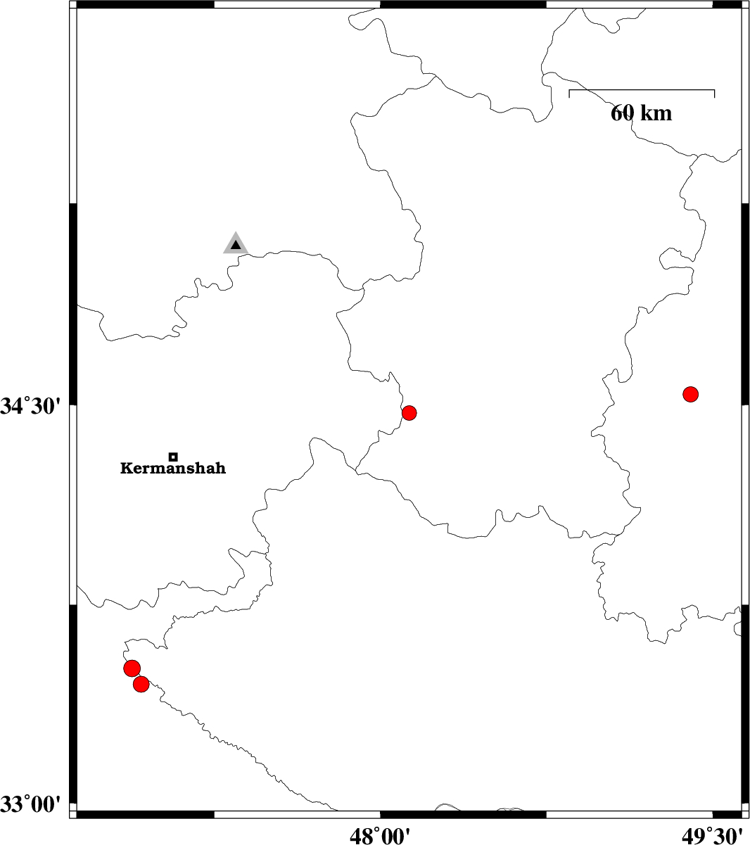 | 2009/08/30 | 09:08:33.8 | 13:38:33.8 | 33.45 | 46.92 | 14 | ML:3.2 | Ilam Province, 50 km South-East of Ilam | ||
