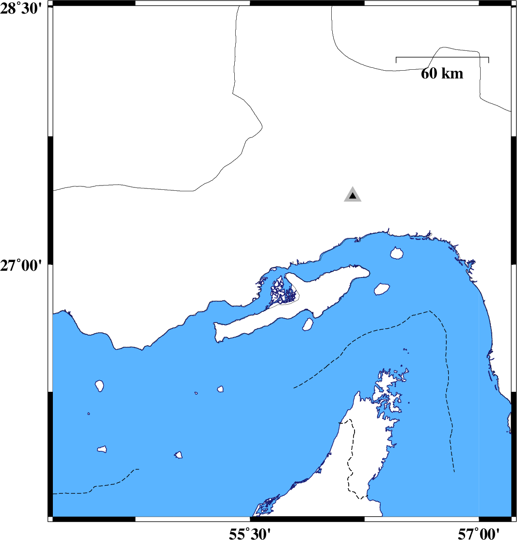| 2009/08/29 | 09:37:21.0 | 14:07:21.0 | 27.28 | 55.78 | 14 | ML:3 | Hormozgan Province, 50 km West of Bandar-e abbas | ||