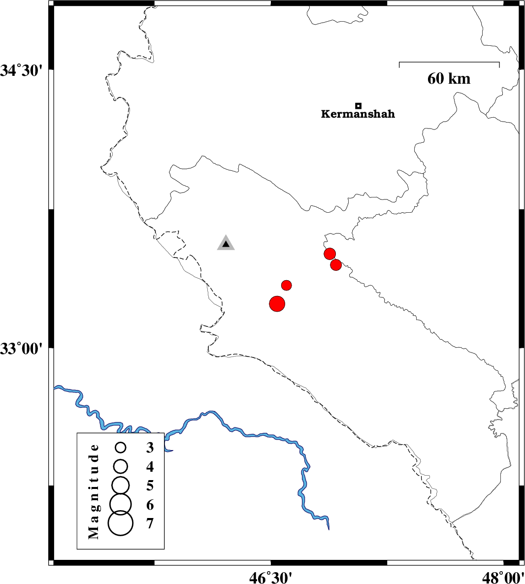 2009/08/30 | 09:08:33.8 | 13:38:33.8 | 33.45 | 46.92 | 14 | ML:3.2 | Ilam Province, 50 km South-East of Ilam |