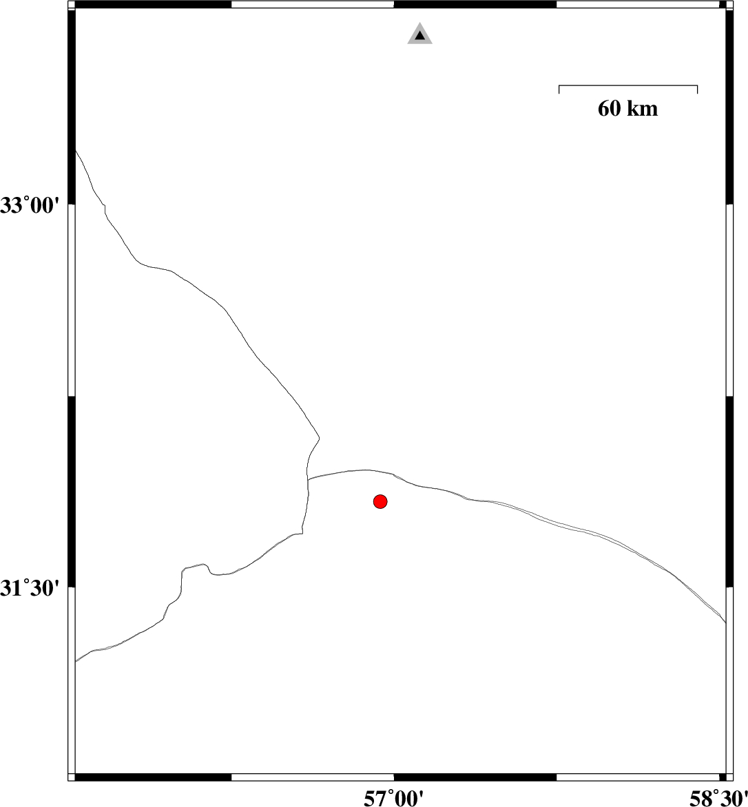 | 2009/10/01 | 22:48:26.1 | 02:18:26.1 | 33.55 | 57.16 | 4 | ML:2.8 | Yazd Province, 22 km East of Tabas | ||