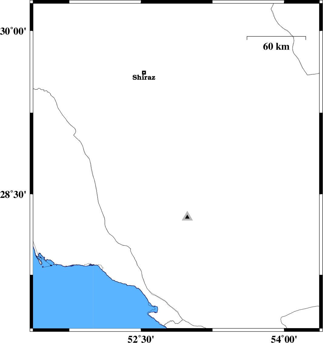 | 2009/09/22 | 06:33:42.9 | 10:03:42.9 | 29.45 | 52.02 | 15 | ML:3.2 | Fars Province, 40 km South-East of Kazerun | ||