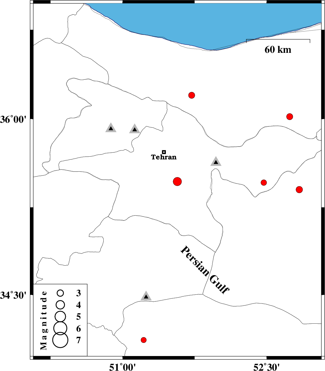 2009/10/10 | 16:54:19.5 | 20:24:19.5 | 35.46 | 52.47 | 15 | ML:2.7 | Tehran Province, 29 km North-East of Garmsar | ||