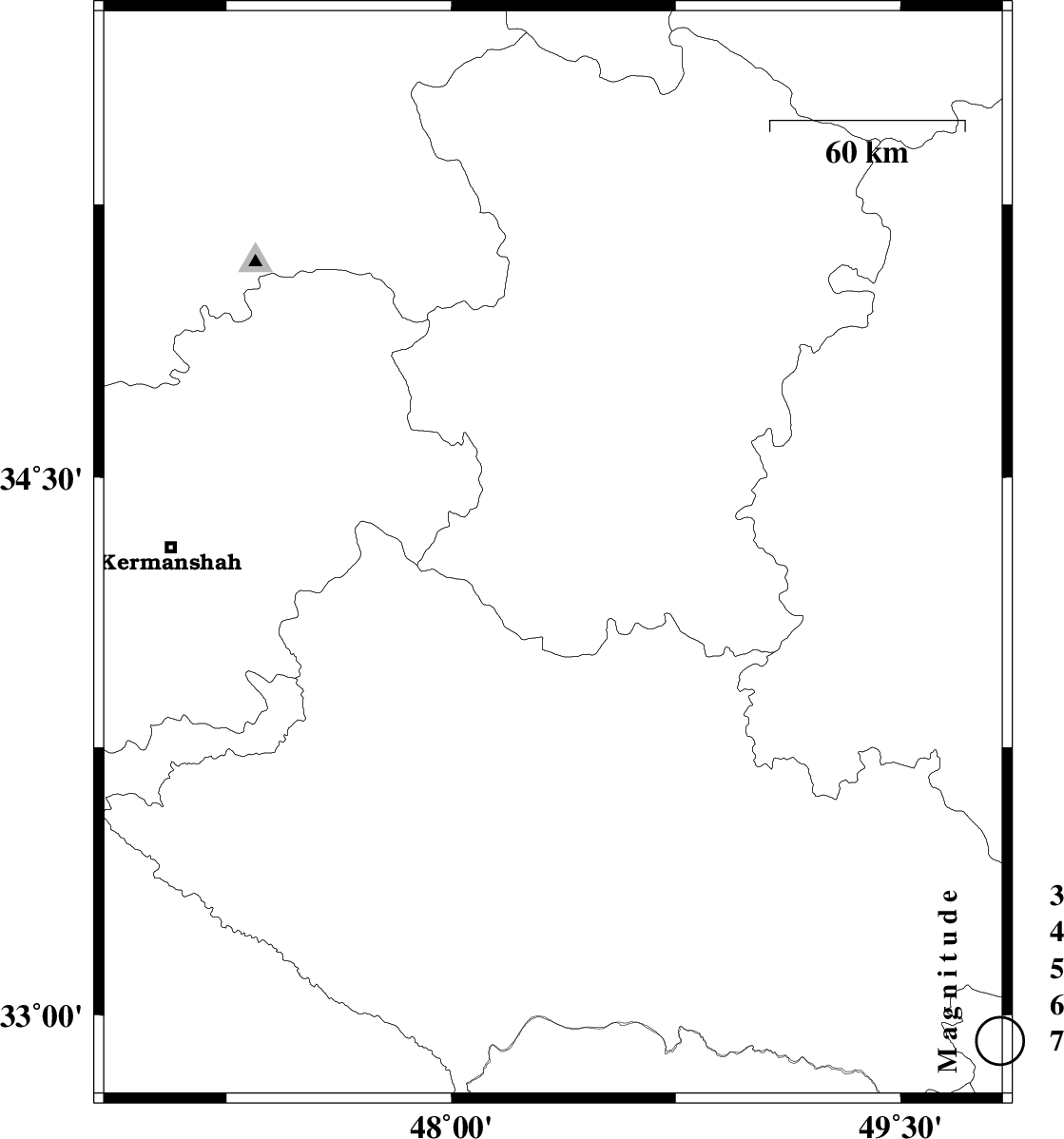 2009/11/24 | 20:46:33.9 | 00:16:33.9 | 33.79 | 48.81 | 7 | ML:2.9 | Lorestan Province, 13 km South of Borujerd | ||