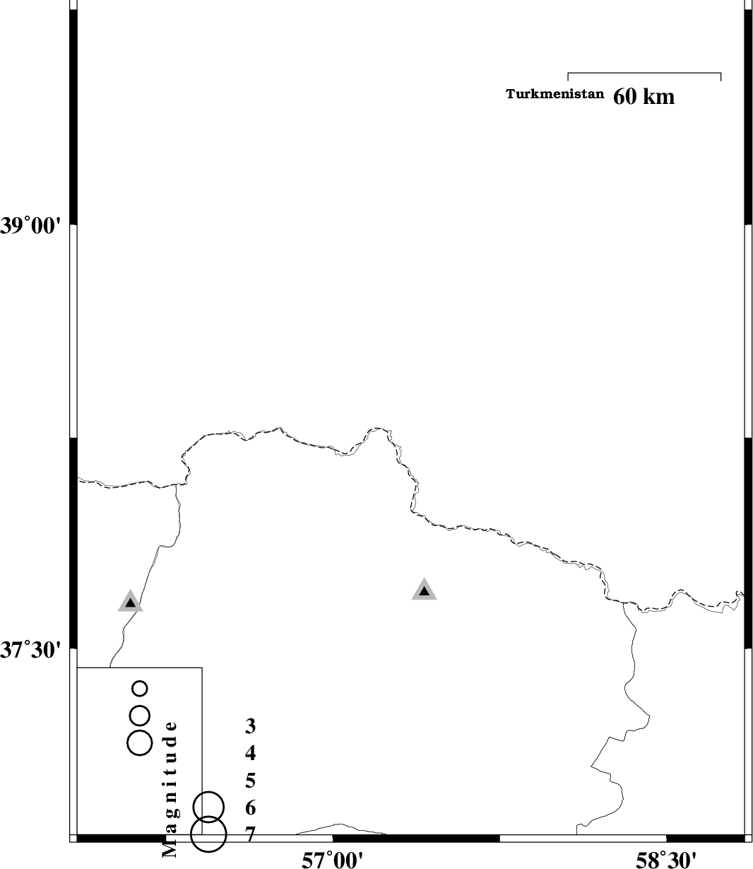 | 2009/11/22 | 21:32:48.4 | 01:02:48.4 | 38.33 | 57.35 | 17 | ML:2.5 | Turkmenistan, 95 km North of Bojnurd |