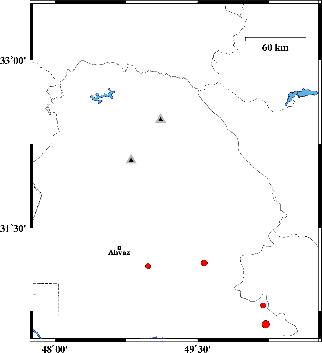 2009/11/23 | 03:24:59.5 | 06:54:59.5 | 32.27 | 48.83 | 15 | ML:2.9 | Khoozestan Province, 25 km North of Shushtar |