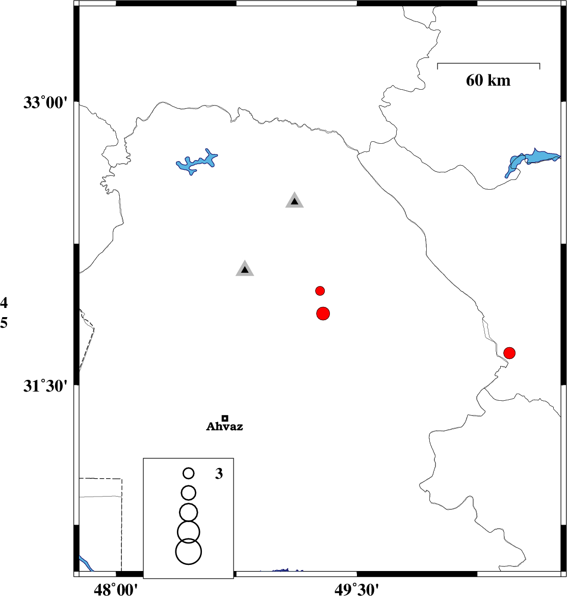 2009/12/22 | 16:55:02.5 | 20:25:02.5 | 32 | 49.27 | 14 | ML:2.6 | Khoozestan Province, 8 km Masjed Soleyman | ||