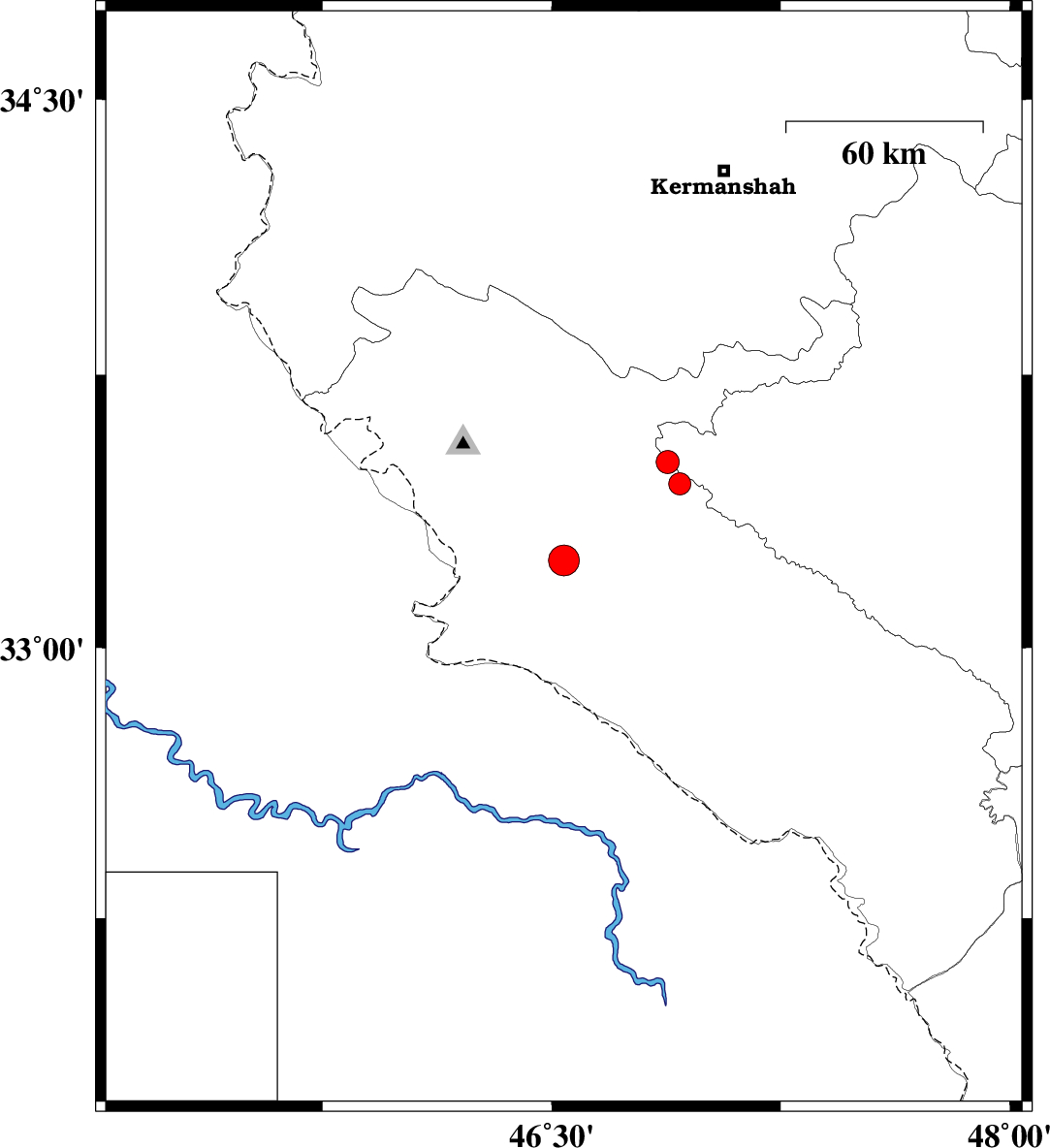 2009/08/30 | 14:04:37.4 | 18:34:37.4 | 33.24 | 46.54 | 14 | ML:4.5 | Ilam Province, 37 km North-East of Mehran | ||