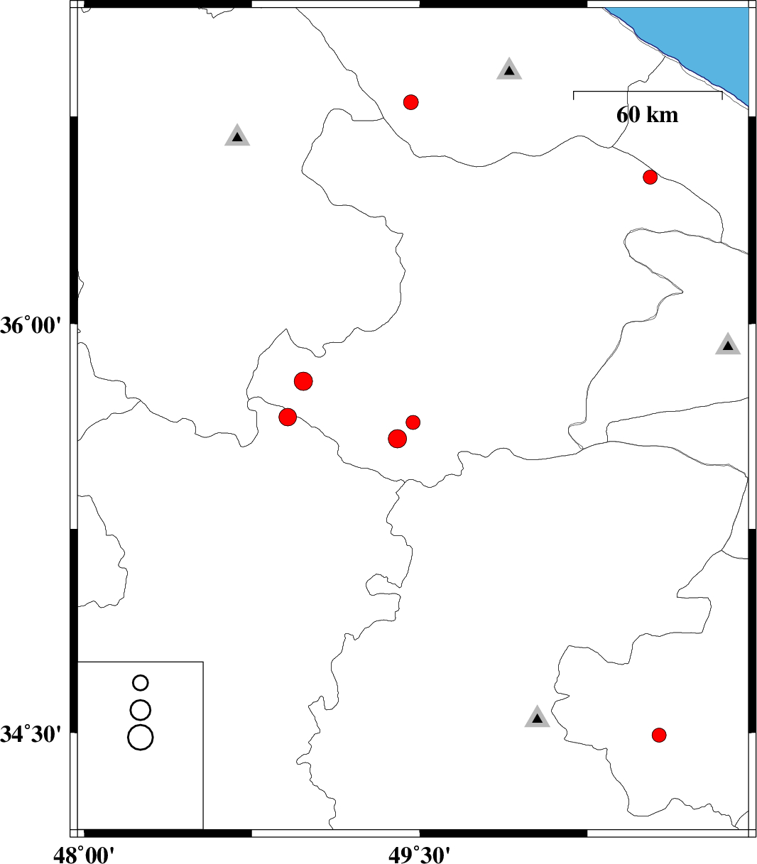 2010/03/04 | 16:38:49.4 | 20:08:49.4 | 35.79 | 48.98 | 33 | ML:3.7 | Ghazvin Province, 46 km North of Razan |