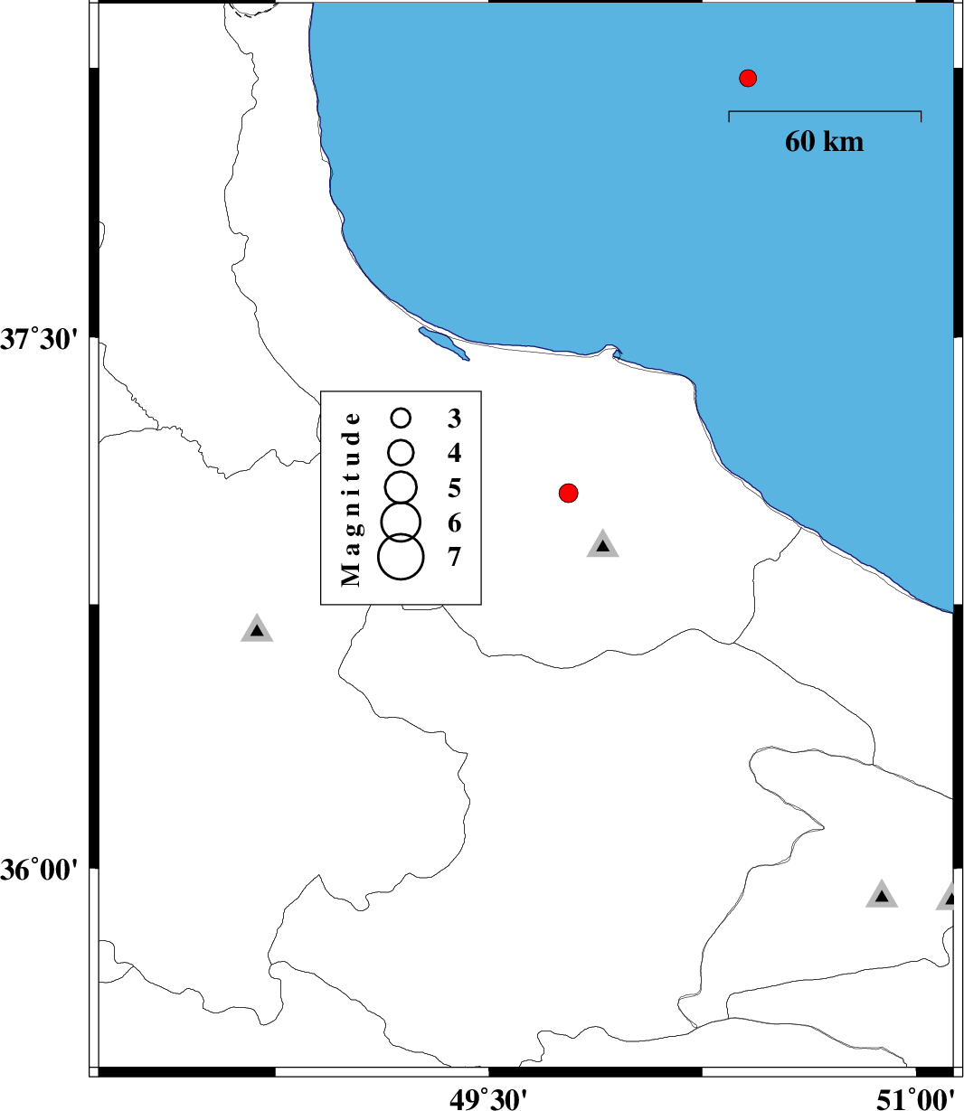 2010/04/11 | 10:13:59.9 | 14:43:59.9 | 36.93 | 49.63 | 34 | ML:2.7 | Gilan Province, 21 km North-East of Rudbar | ||