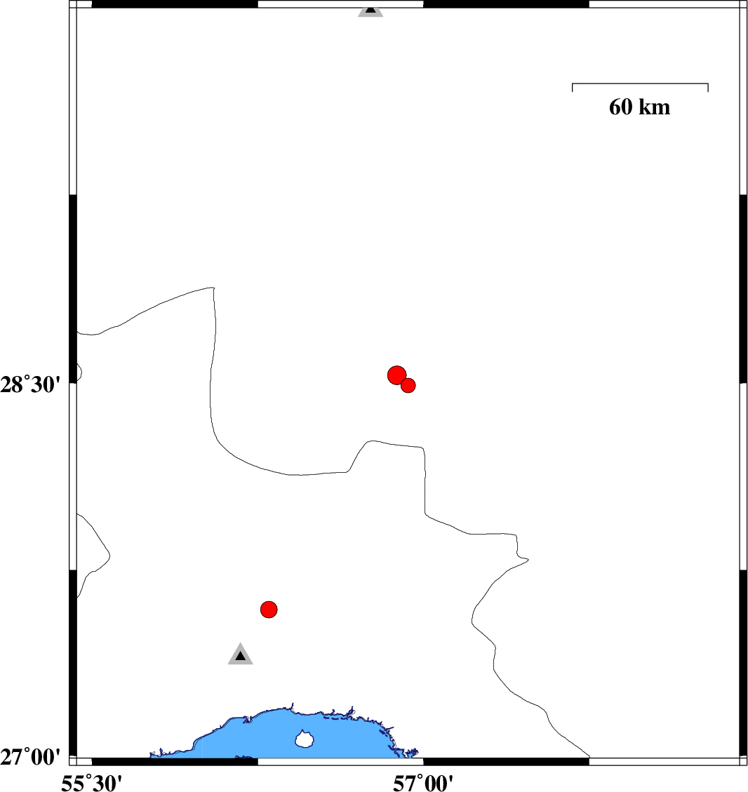 2010/04/10 | 21:26:03.0 | 01:56:03.0 | 27.59 | 56.3 | 14 | ML:3.4 | Hormozgan Province, 45 km North of Bandar-e abbas |