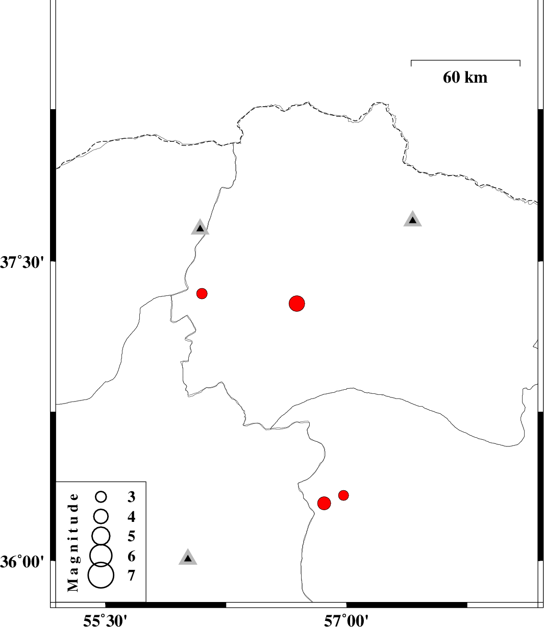 2010/04/19 | 03:31:15.9 | 08:01:15.9 | 37.29 | 56.69 | 15 | ML:4.4 | Khorasan(north) Province, 36 km South-West of Ashkhaneh | ||