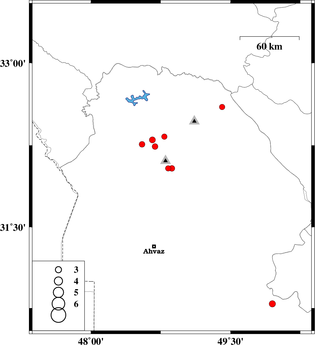 | 2010/04/23 | 19:02:36.0 | 23:32:36.0 | 32.04 | 48.87 | 38 | ML:2.8 | Khoozestan Province, 1 km Shushtar | ||