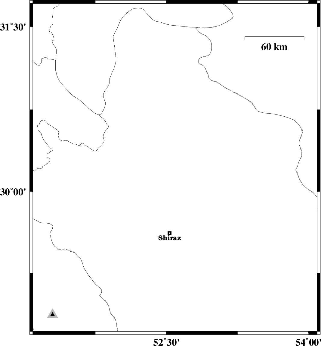 2010/05/05 | 03:39:00.3 | 08:09:00.3 | 30.21 | 52.59 | 15 | ML:3 | Fars Province, 43 km North-West of Marvdasht |