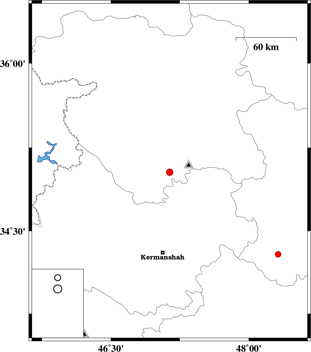 2010/05/24 | 12:37:21.5 | 17:07:21.5 | 35.03 | 47.14 | 14 | ML:3.4 | Kordestan Province, 29 km North-East of Kamyaran | ||