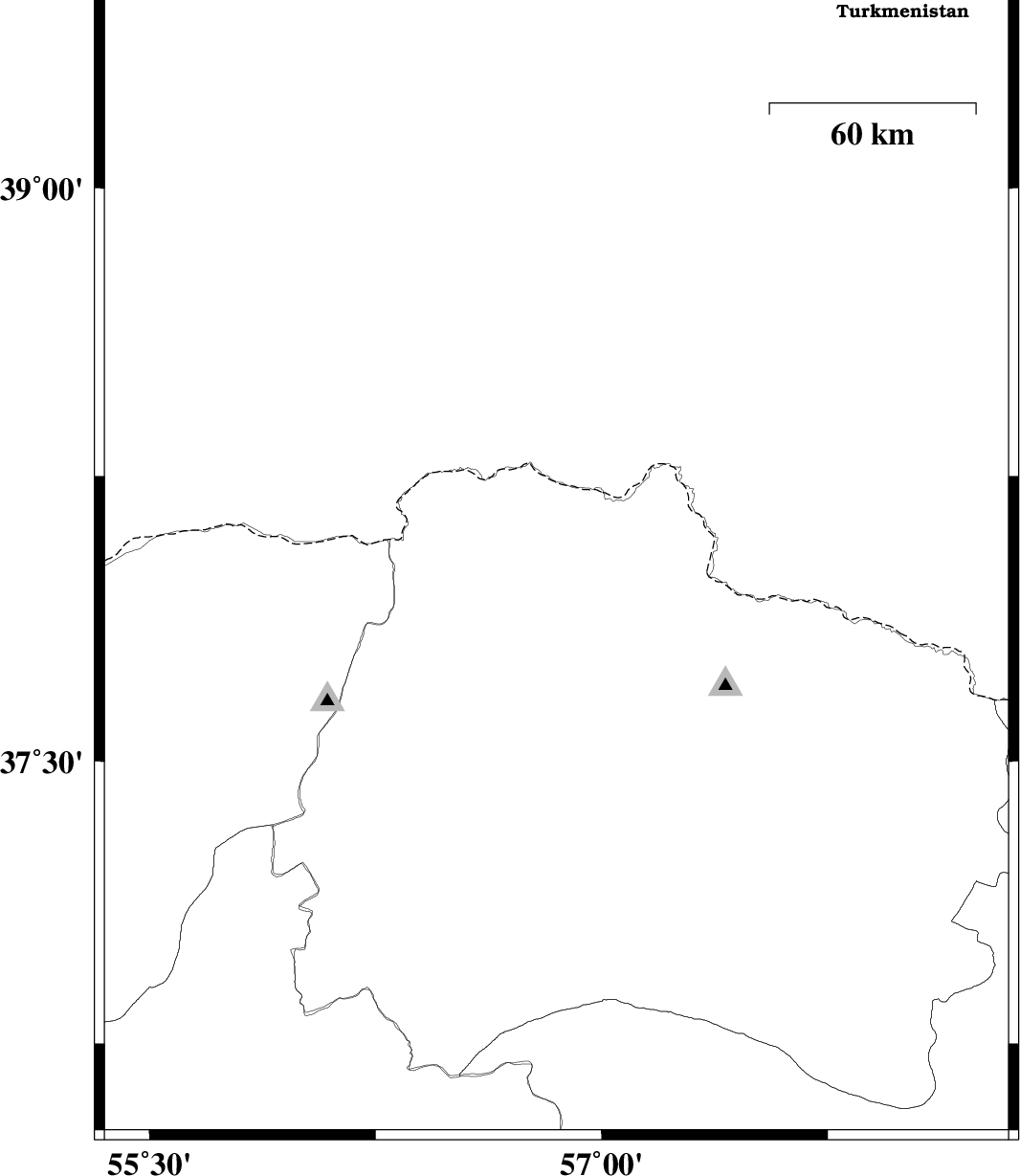 2010/05/22 | 19:14:39.1 | 23:44:39.1 | 37.29 | 56.88 | 46 | ML:2.8 | Khorasan(north) Province, 30 km South of Ashkhaneh | ||