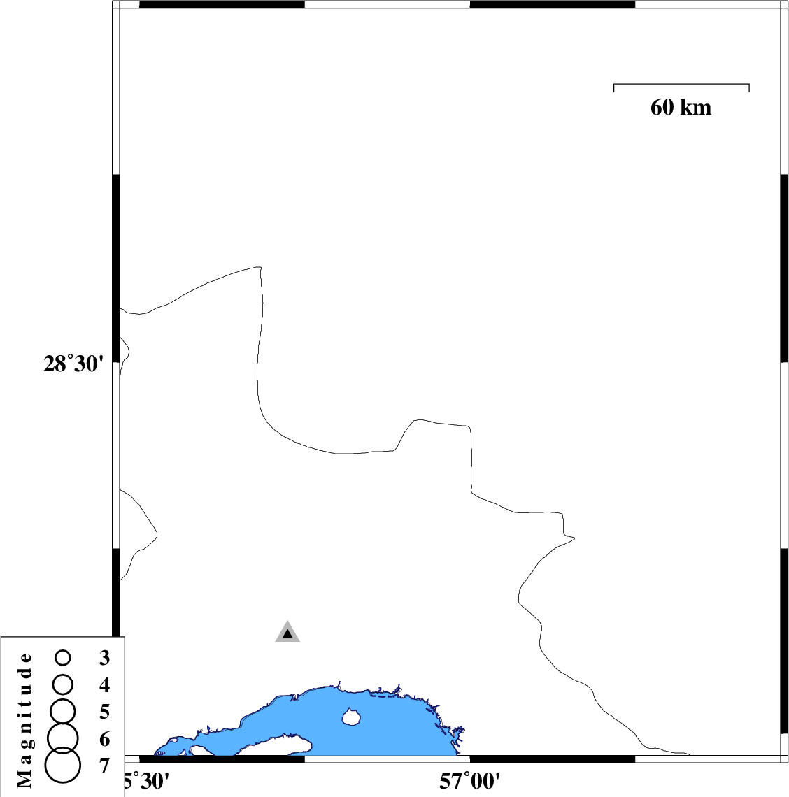 2010/05/20 | 12:38:26.6 | 17:08:26.6 | 28.19 | 57.33 | 45 | ML:3.4 | Kerman Province, 45 km North-West of Kahnuj | ||
