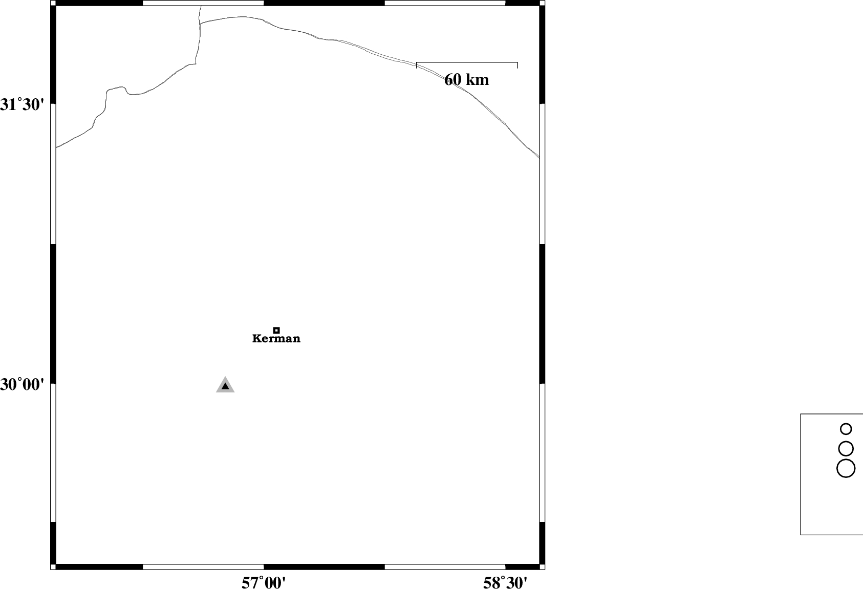 2010/06/01 | 05:41:35.4 | 10:11:35.4 | 30.52 | 57.21 | 10 | ML:3 | Kerman Province, 29 km North-East of Kerman |