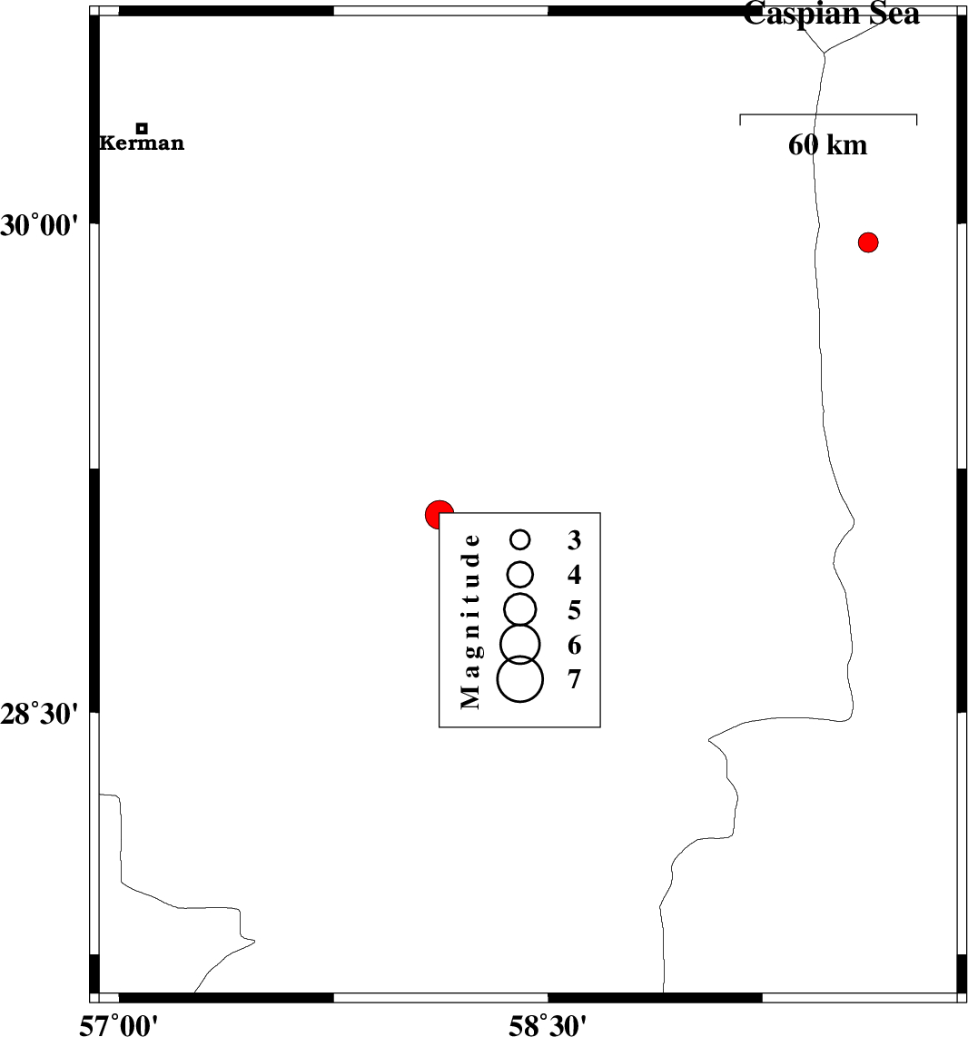 2010/06/01 | 23:37:27.3 | 04:07:27.3 | 29.13 | 58.43 | 14 | ML:3.1 | Kerman Province, 7 km Bam | ||
