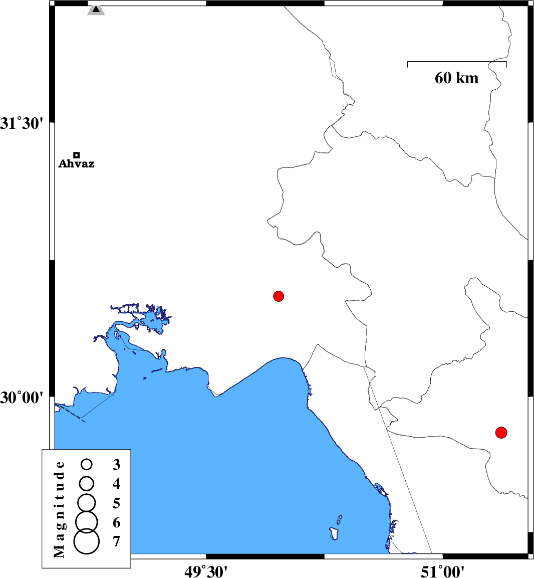2010/06/02 | 18:56:19.8 | 23:26:19.8 | 30.63 | 50.04 | 33 | ML:3 | Khoozestan Province, 20 km West of Behbahan | ||