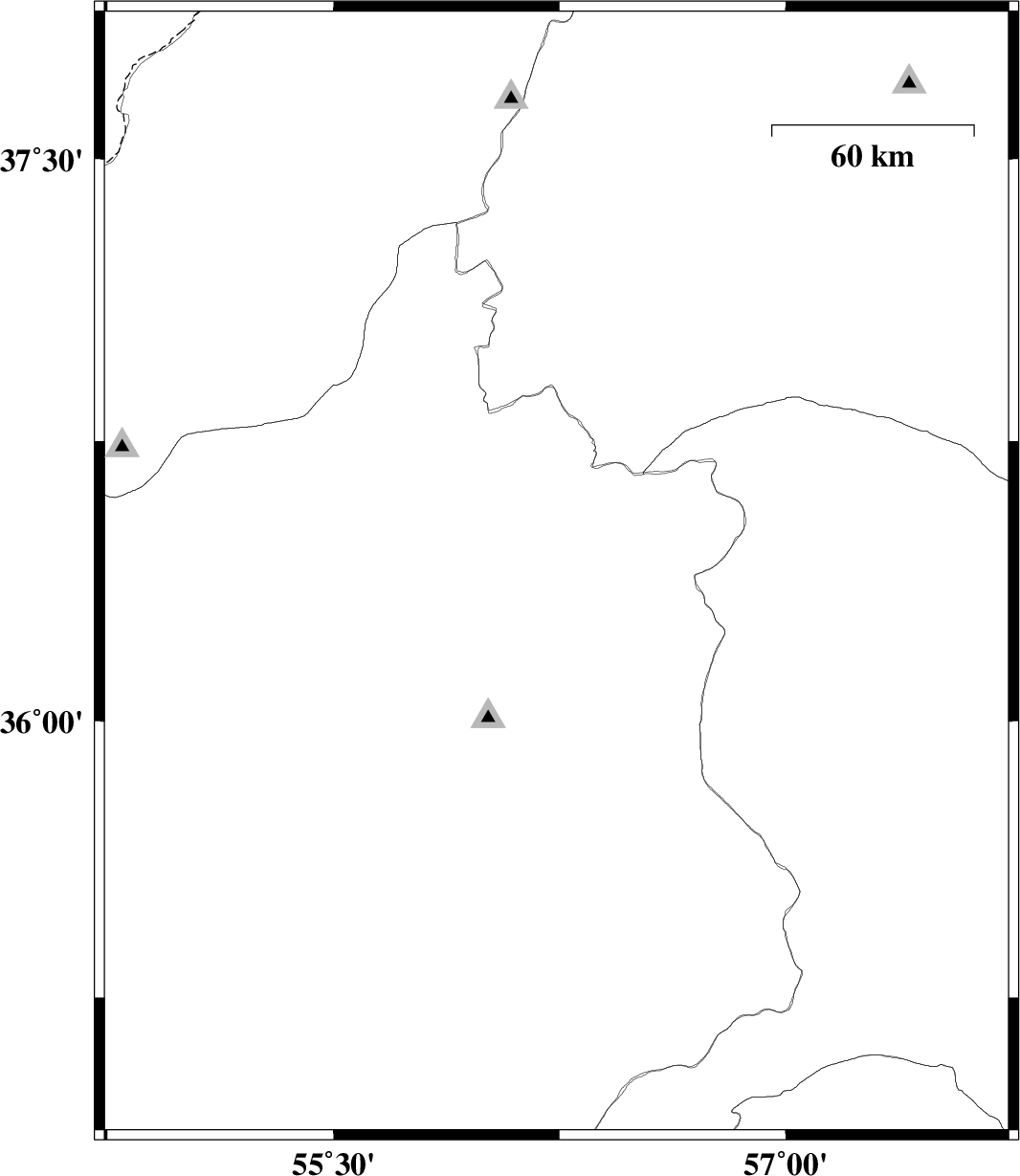 2010/05/22 | 19:14:39.1 | 23:44:39.1 | 37.29 | 56.88 | 46 | ML:2.8 | Khorasan(north) Province, 30 km South of Ashkhaneh | ||