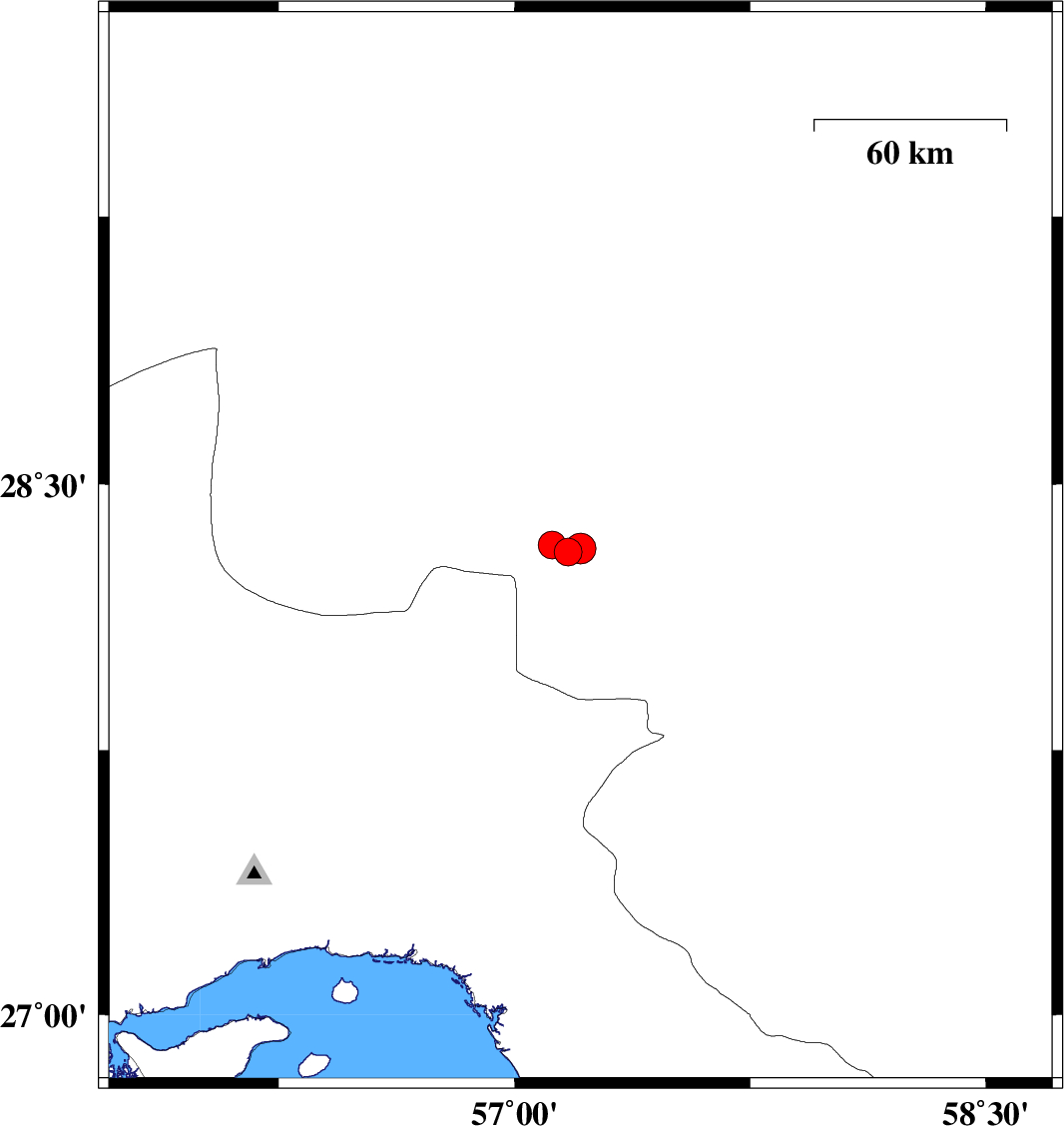 2010/06/14 | 04:13:45.8 | 08:43:45.8 | 28.33 | 57.12 | 15 | ML:4 | Kerman Province, 70 km North-West of Kahnuj |