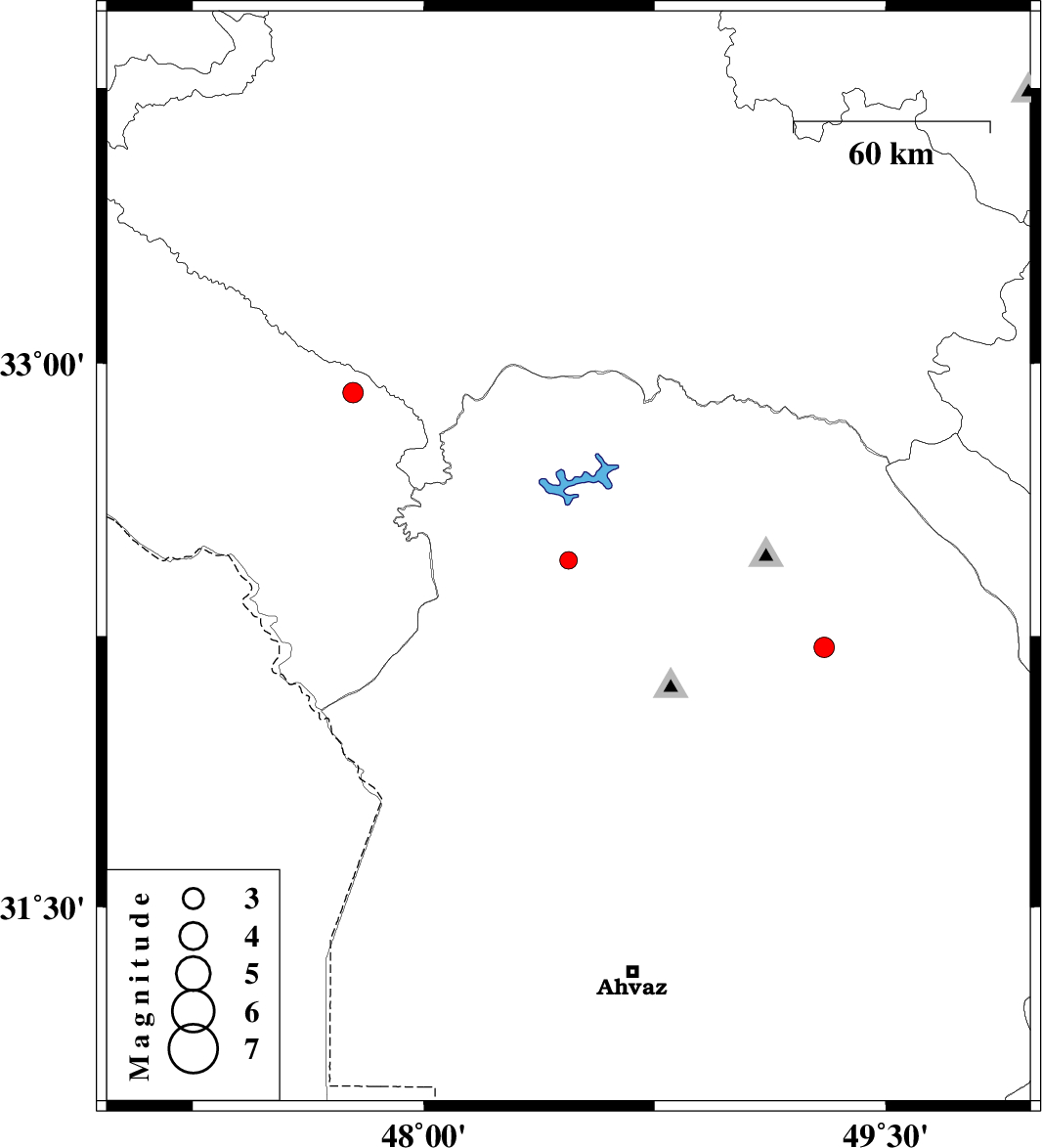 | 2010/06/26 | 08:37:20.5 | 13:07:20.5 | 32.46 | 48.47 | 14 | ML:2.6 | Khoozestan Province, 11 km East of Andimeshk | ||