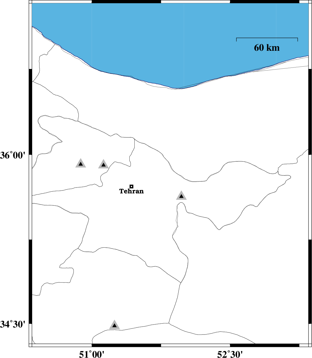 2010/06/29 | 02:04:19.2 | 06:34:19.2 | 35.82 | 51.85 | 11 | ML:2.5 | Tehran Province, 23 km North-West of Damavand | ||