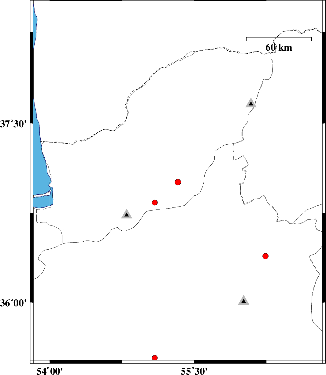 2010/06/13 | 13:22:28.8 | 17:52:28.8 | 36.84 | 55.09 | 14 | ML:2.6 | Golestan Province, 20 km South of Ramian | ||