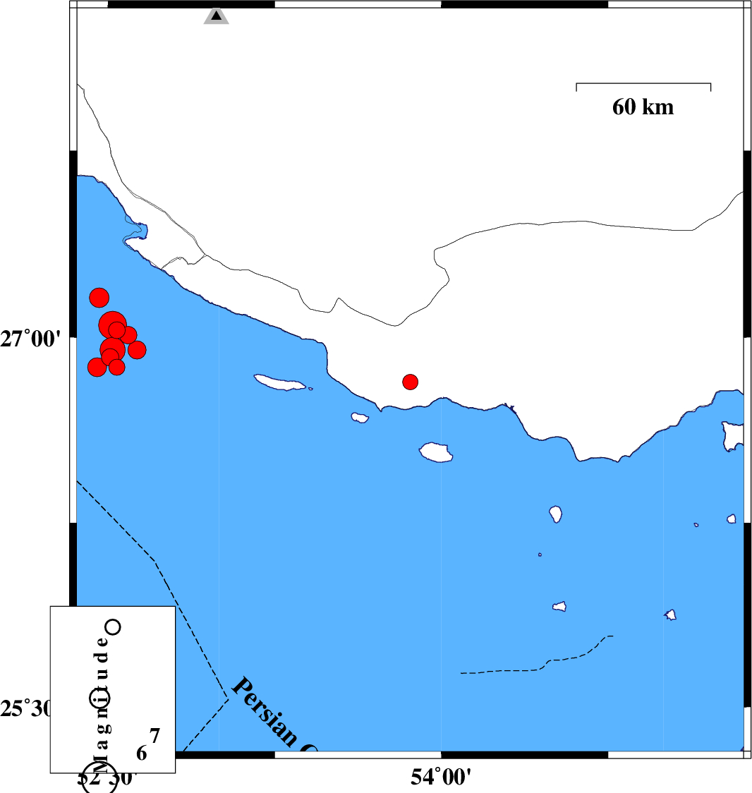 2010/07/20 20:24:52.4 00:54:52.4 26.8953.9518 ML:3.7 Hormozgan Province, 53 km South-West of Bastak