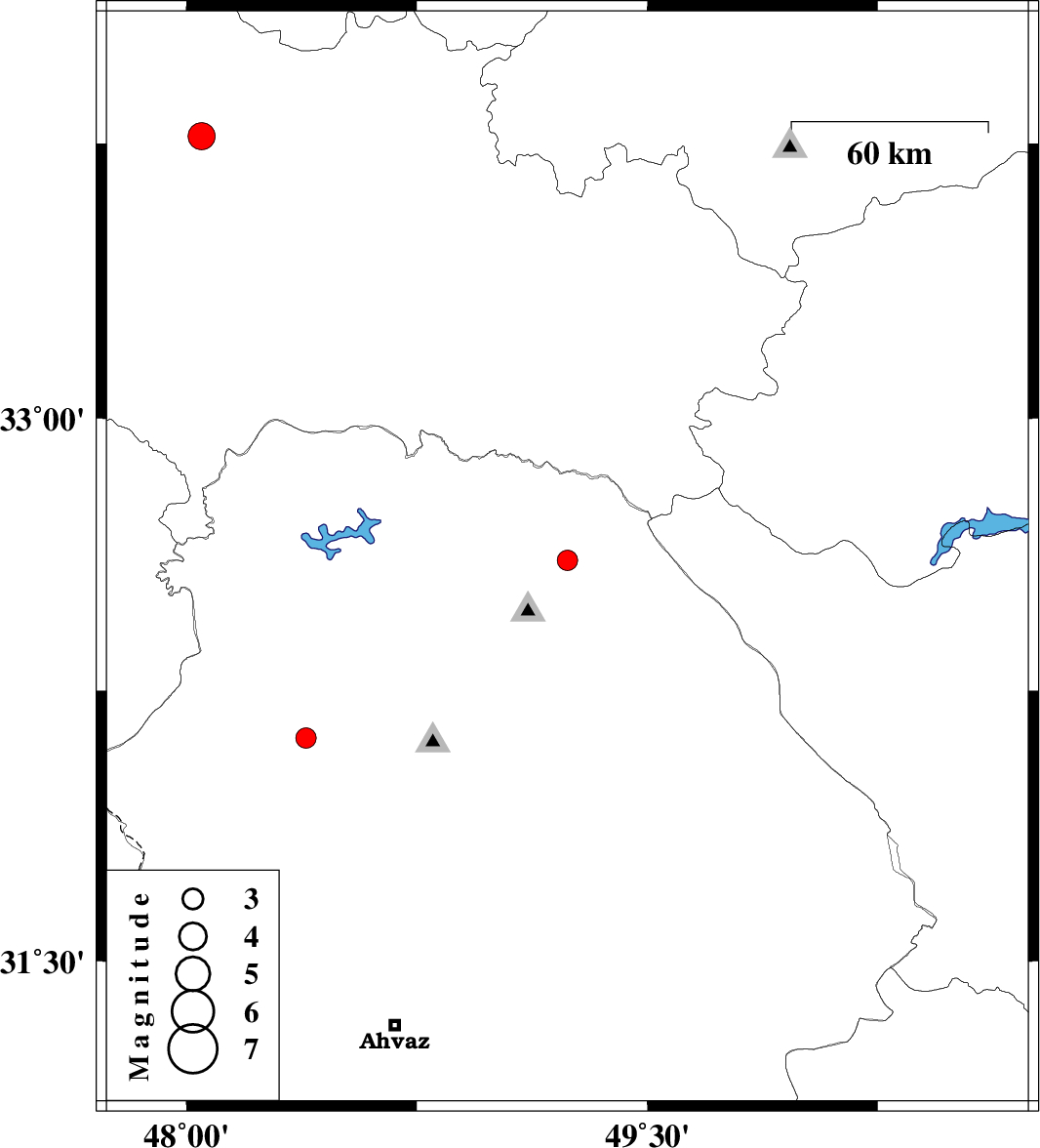 2010/07/21 | 18:02:29.6 | 22:32:29.6 | 32.12 | 48.39 | 18 | ML:3 | Khoozestan Province, 16 km East of Shush | ||