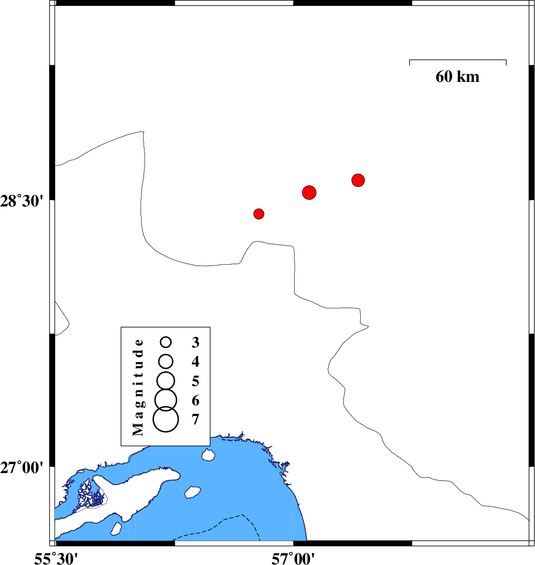 | 2010/07/24 | 16:05:22.4 | 20:35:22.4 | 28.01 | 56.68 | 14 | ML:3.9 | Hormozgan Province, 83 km South-East of Hajiabad |