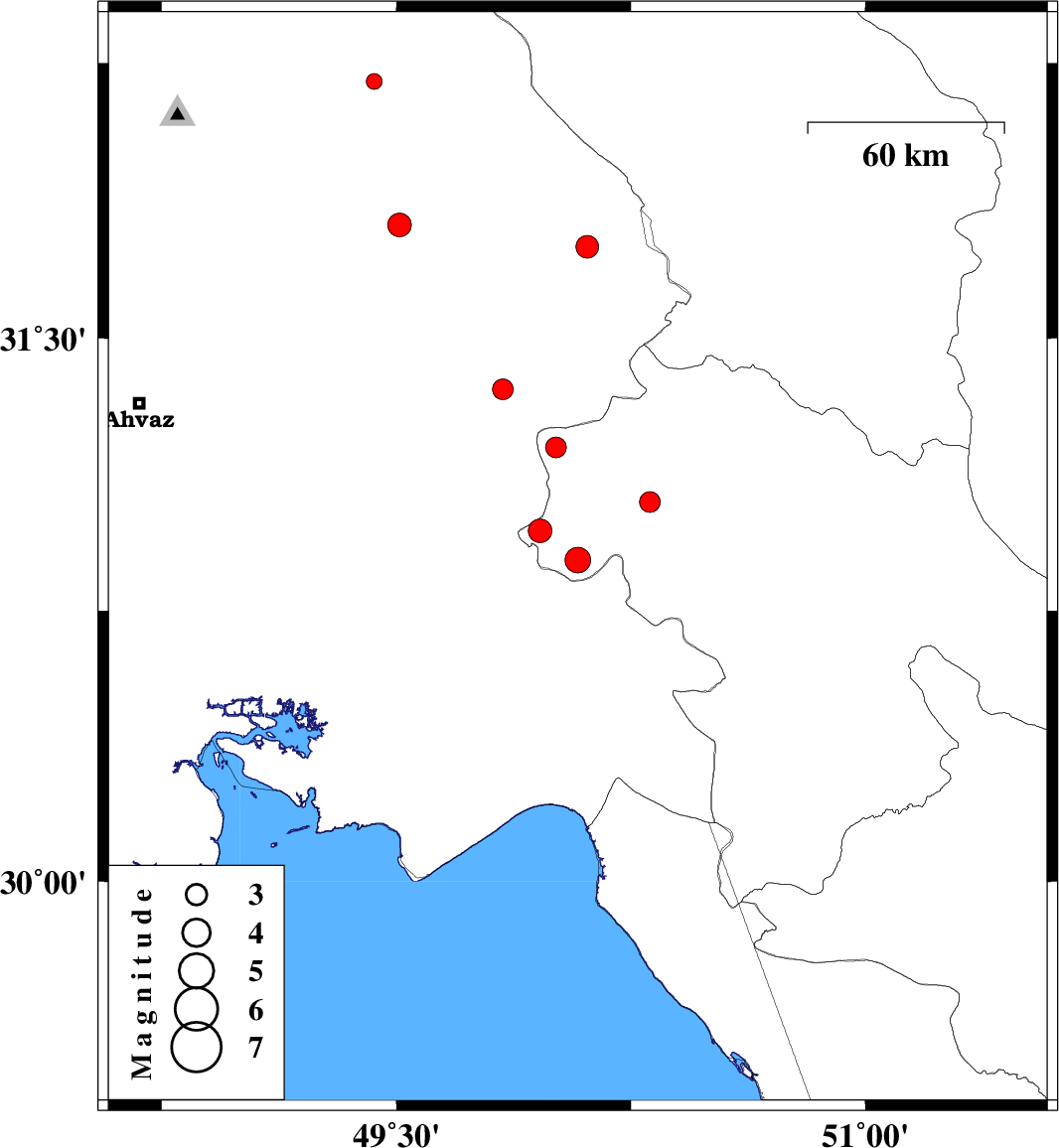 | 2010/07/13 | 04:55:57.4 | 09:25:57.4 | 32.2 | 49.43 | 14 | ML:2.3 | Khoozestan Province, 31 km North-East of Masjed Soleyman | ||