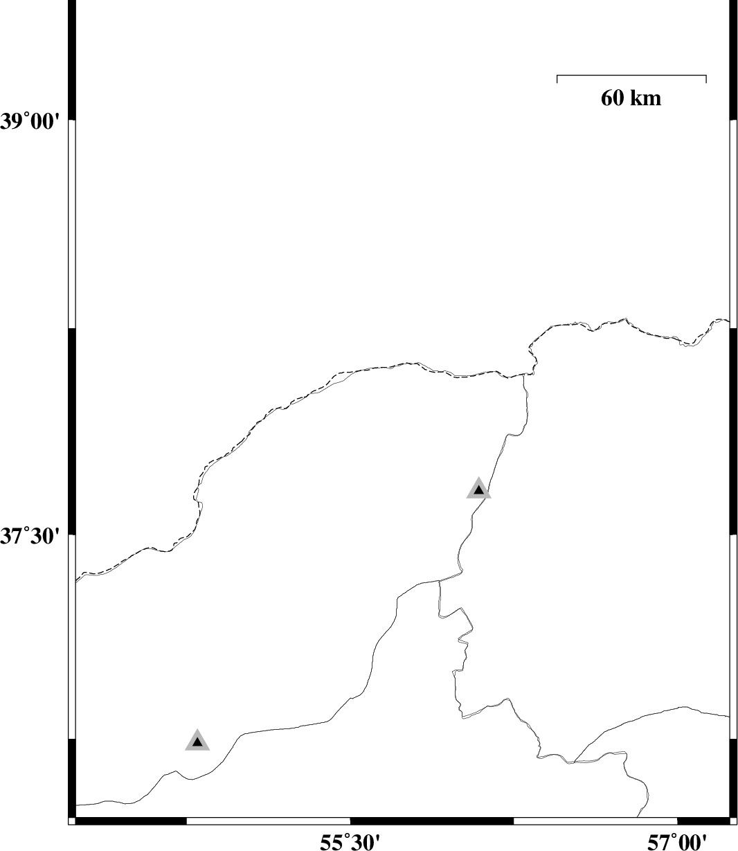 2010/07/23 | 01:01:14.3 | 05:31:14.3 | 37.73 | 56.95 | 14 | ML:3.1 | Khorasan(north) Province, 20 km North of Ashkhaneh | ||