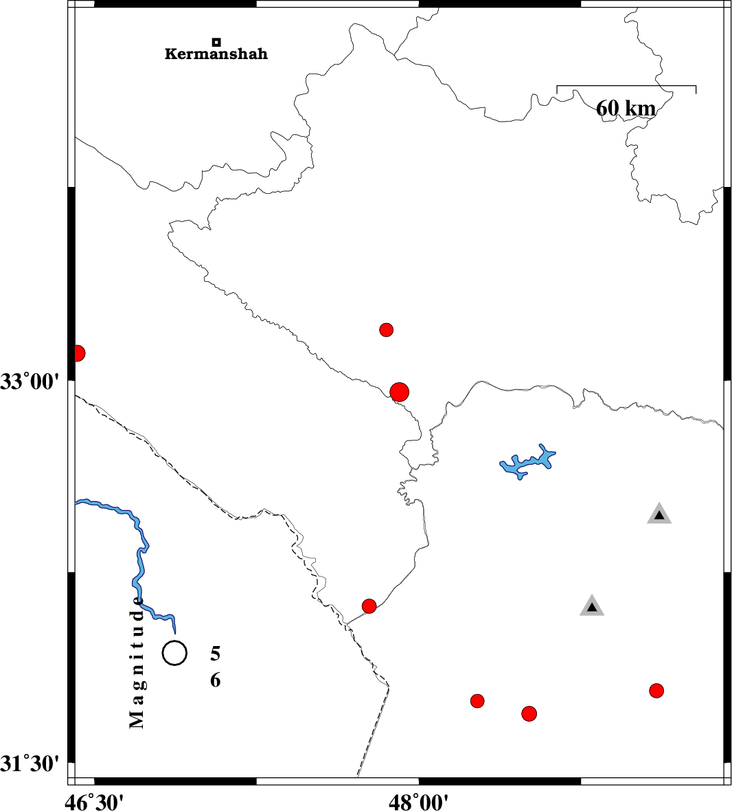 | 2010/07/28 | 11:17:06.2 | 15:47:06.2 | 32.57 | 48.41 | 18 | ML:2.8 | Khoozestan Province, 13 km North of Andimeshk | ||