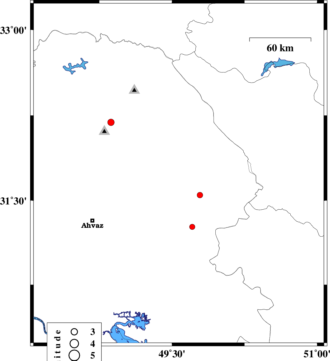 | 2010/08/04 | 23:34:56.5 | 04:04:56.5 | 32.65 | 48.73 | 14 | ML:3.1 | Khoozestan Province, 41 km North-East of Andimeshk |