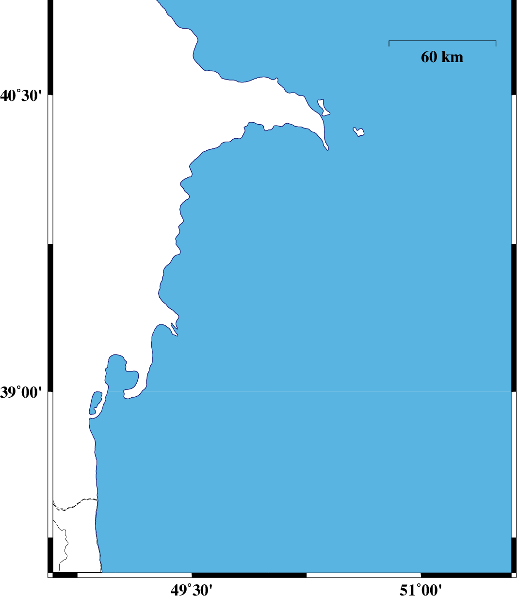 2010/08/13 | 07:25:21.2 | 11:55:21.2 | 39.57 | 50.09 | 14 | ML:3.6 | Caspian Sea, 94 km South-East of Baku |