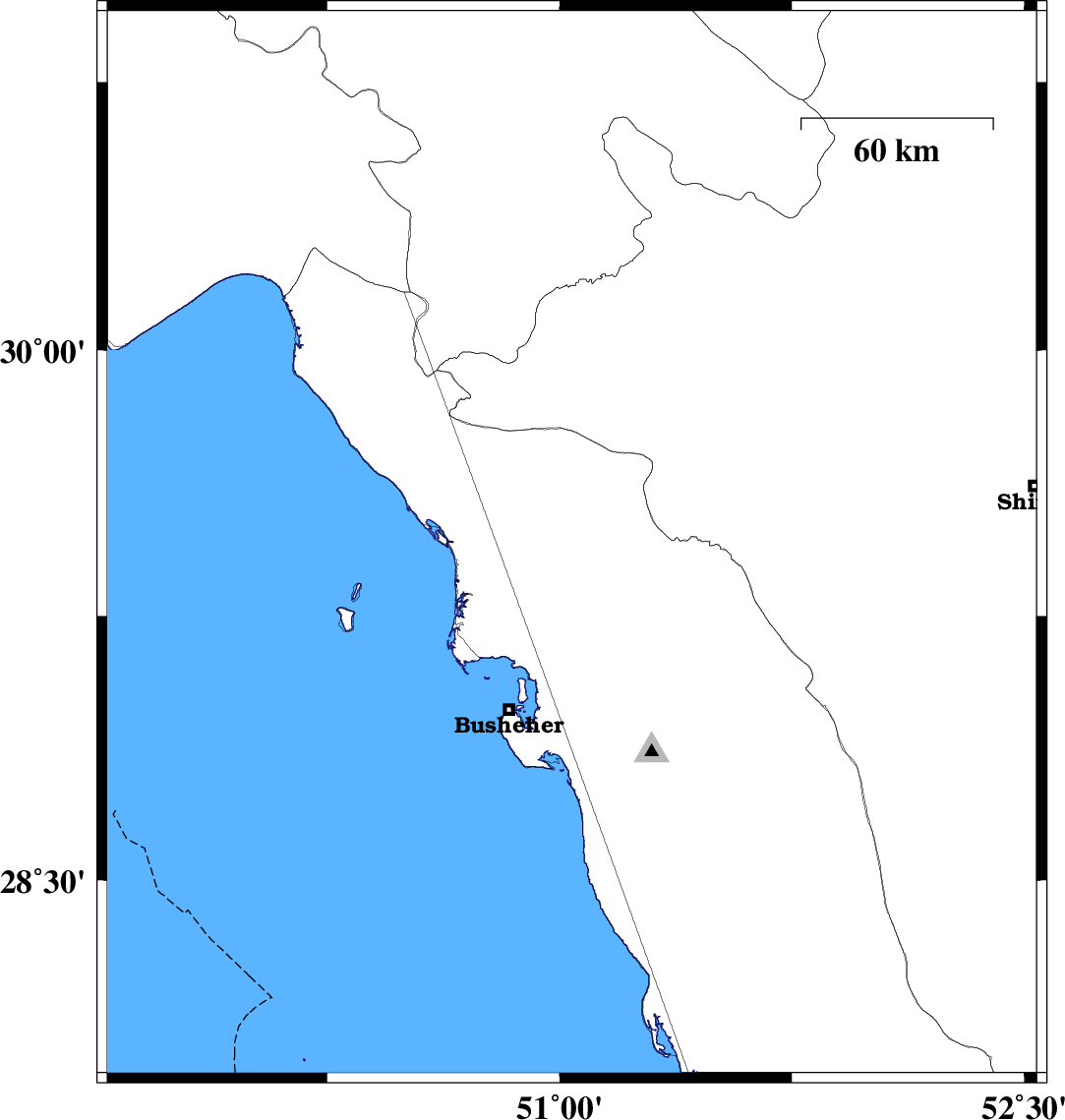 2010/08/15 | 01:48:48.7 | 06:18:48.7 | 29.45 | 51.04 | 18 | ML:3.2 | Bushehr Province, 26 km North-West of Borazjan | ||