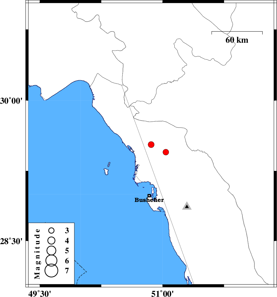 2010/08/15 | 01:48:48.7 | 06:18:48.7 | 29.45 | 51.04 | 18 | ML:3.2 | Bushehr Province, 26 km North-West of Borazjan |